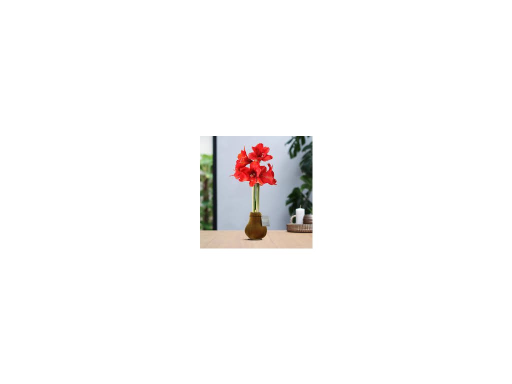 Amarylis ( Hippeastrum ) patří mezi nejpůsobivější cibuloviny pěstované v interiéru. Vyniká velkými, nápadnými květy, které mohou dosahovat průměru až 15–20 cm . Květy vyrůstají na pevném, přímém stvolu vysokém přibližně 40–60 cm , což rostlině dodává elegantní a reprezentativní vzhled. Nakvetená varianta je ideální pro zákazníky, kteří chtějí okamžitý efekt bez čekání na rozkvět. Rostlina je již ve fázi květu nebo těsně před plným rozvinutím poupat, takže ihned po umístění do interiéru vytváří výraznou dekoraci. Barevnost květů se může lišit dle konkrétní odrůdy – nejčastěji se jedná o odstíny červené, bílé, růžové nebo jejich kombinace. Amarylis vyžaduje světlé stanoviště bez přímého ostrého slunce . Ideální je umístění poblíž okna při běžné pokojové teplotě kolem 18–22 °C. Při nižší teplotě vydrží květy déle, při vyšší teplotě může být doba kvetení kratší. Zálivka by měla být mírná. Substrát udržujte lehce vlhký, nikoli přemokřený. Přebytečnou vodu z podmisky vždy odstraňte, aby nedocházelo k zahnívání cibule. Po odkvětu je možné stonek seříznout a pokračovat v pěstování – při správné péči může cibule znovu vykvést v další sezóně. Velikost o průměru 12 cm. Nakvetená amarylis je ideální volbou pro zákazníky, kteří hledají výraznou, elegantní a reprezentativní kvetoucí rostlinu s okamžitým vizuálním efektem.Doplňkové parametry