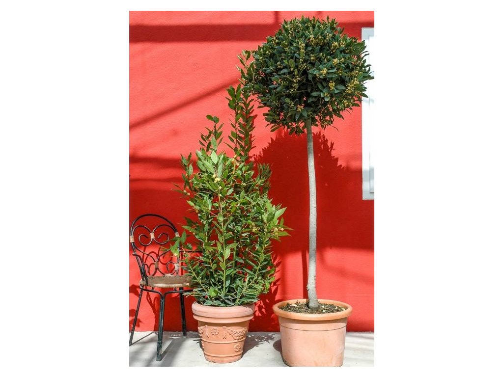 Vavřín vznešený ( Laurus nobilis ) je stálezelený keř až menší strom pocházející ze Středomoří. V našich podmínkách dorůstá obvykle 1,8–2,5 metru , při pěstování v nádobě roste pomaleji a lze jej snadno tvarovat řezem. Rostlina má pevné, kožovité, tmavě zelené listy s typickou aromatickou vůní. Listy jsou běžně využívány jako kuchyňské koření (bobkový list) do polévek, omáček, marinád či při nakládání zeleniny. Sklízet je lze průběžně během roku. Na jaře může kvést drobnými, nenápadnými žlutými květy , ze kterých se u samičích rostlin mohou vyvinout tmavé plody. Vavřín vyžaduje slunné až světlé stanoviště , chráněné před silným větrem. Nejlépe prospívá v propustné, výživné půdě. Při pěstování v nádobě je důležitá kvalitní drenážní vrstva, aby nedocházelo k přemokření kořenů. Zálivka by měla být pravidelná, ale přiměřená – substrát by měl mezi zálivkami lehce proschnout. Přemokření může vést k poškození kořenového systému. Během vegetační sezóny lze přihnojovat hnojivem pro středomořské rostliny. Rostlina je částečně mrazuvzdorná (krátkodobě snese slabší mráz), avšak v chladnějších oblastech doporučujeme zimování v chladné, světlé místnosti s teplotou kolem 5–10 °C. Při pěstování ve volné půdě je vhodná zimní ochrana. Velikost 125–150 cm, kontejner 10 L znamená již silnou, zapěstovanou rostlinu s dobře vyvinutým kořenovým balem, která po umístění okamžitě vytvoří výrazný efekt. Vavřín vznešený je ideální volbou pro zákazníky, kteří hledají kombinaci užitkové a okrasné rostliny , s možností celoroční sklizně aromatických listů a elegantního středomořského vzhledu.Doplňkové parametry